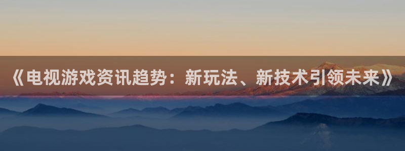 高德娱乐登陆地址:《电视游戏资讯趋势:新玩法、新技术引领未来》